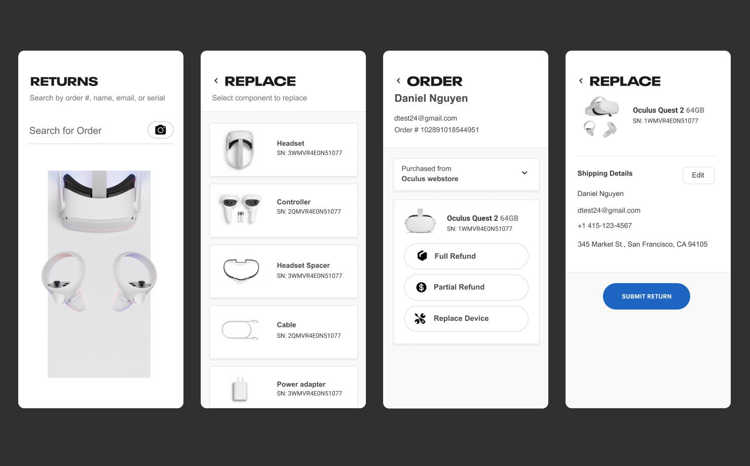 Designed the user flow and experience for Meta Quest's eCommerce and customer support website (meta.com). Used Figma to design mockups and present prototypes. Created a customer management tool for handling support calls. Designed an ecosystem of security tools to keep employees safe.